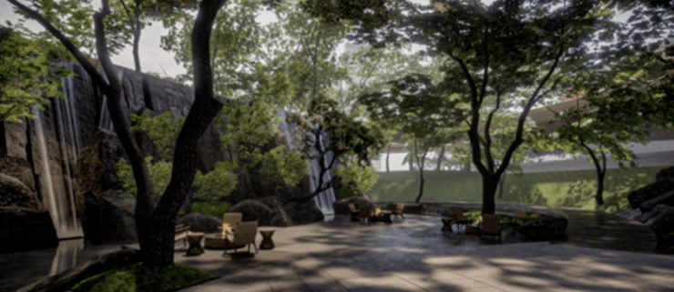项目整体规划低密度,仅一栋住宅,套数稀缺共96户,容积率低,空间开阔。小区架空四层形成约十米的高度差,既隔离外界噪音,也增强景观层次感。园区内打造船舷花园,林泉、瀑布、溪流与花木错落有致,形成立体都市秘境,使住户在城市核心区也能享受生态宜居环境。整体绿化率达35%,结合高标准星级绿建技术,为业主提供舒适自然的生活体验,兼顾私密性与高端景观享受,是稀缺的城市低密豪宅产品。