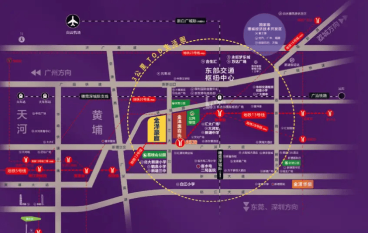 交通:项目距离地铁13号线新塘站直线距离约1.2公里,车程5分钟;周边广园快速路、广深大道等主干道环绕,自驾通达珠江新城约30分钟。