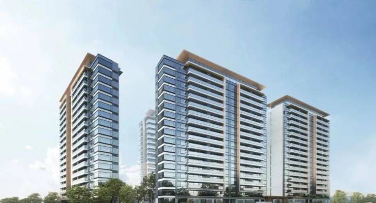 项目采用全铝幕墙立面,是当下高端改善住宅的标志性配置之一。相较传统外立面,全铝幕墙具备更好的稳定性、耐久性与美观度,建筑整体呈现简洁、现代又大气的天际线。加上三段式立面与中式挑檐顶部设计,让整盘既有现代建筑的干净利落,又有东方建筑的文化韵味,更适合长期审美。