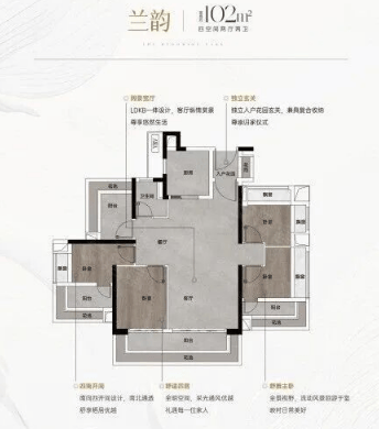 建面约102-128㎡南向三至四房:私密性佳,居住体验优越。
