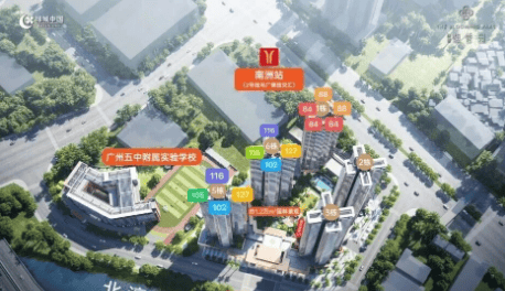 紧邻地铁2号线和广佛线换乘站南洲站,直线距离仅一百米,交通便捷。此外,项目还规划了一条地下连廊直通地铁站,为业主提供便利的同时也避免了日晒雨淋。