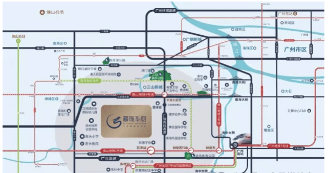 藏珑华府坐落于广珠西线石洲出口西侧800米,地处“广佛核心交汇处”,位于三山新城、广钢新城和广州南站三大核心圈的黄金交汇点。作为顺德陈村板块的重要组成部分,该项目北接广钢新城,南连佛山新城,西靠千灯湖金融高新区,东临广州番禺,毗邻华南地区大型交通枢纽——广州南站。这里不仅是广佛双城生活的便捷转换点,更是未来极具升值潜力的投资热点。