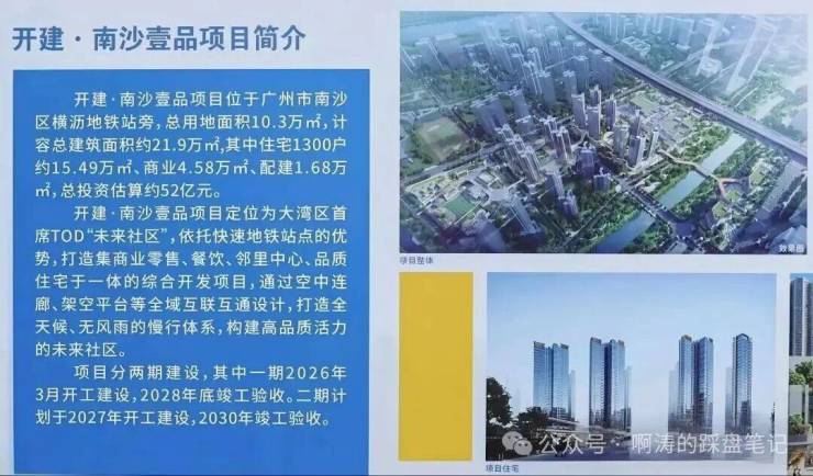 答:项目一期 2026 年 3 月开工,2028 年底竣工验收;二期 2027 年开工,2030 年竣工验收,工期明确公示。由南沙开建集团(区属国企)开发,资金实力雄厚,工程质量严格按照国家规范执行,全程接受政府监管,交付时间与质量双重保障。