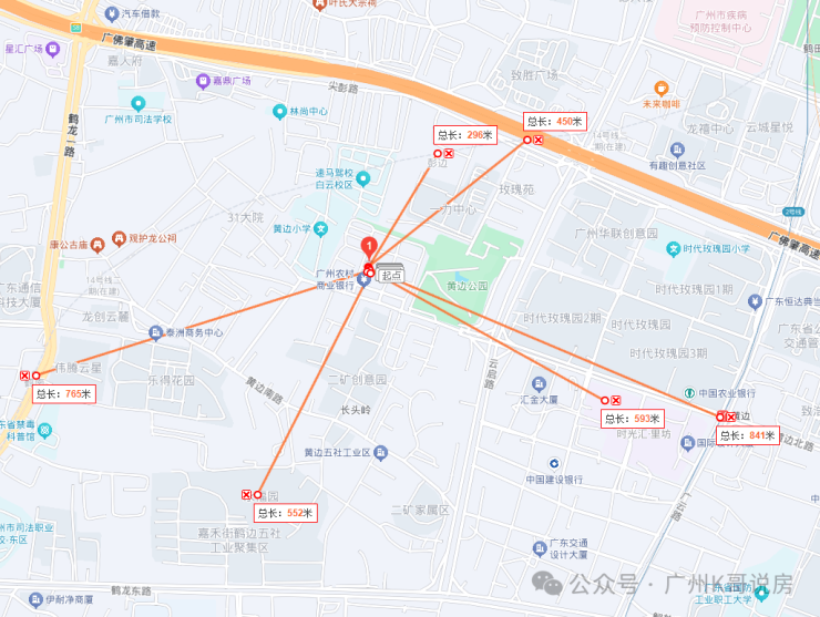 交通方面,地铁2号线的黄边站几百米,3站白云新城,直达江南西,广州南。1站换乘嘉⽲望岗(地铁2/3/14号线交汇)。在建的14号线彭边站,只有两三百米。