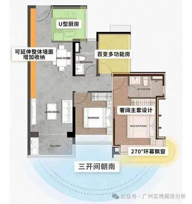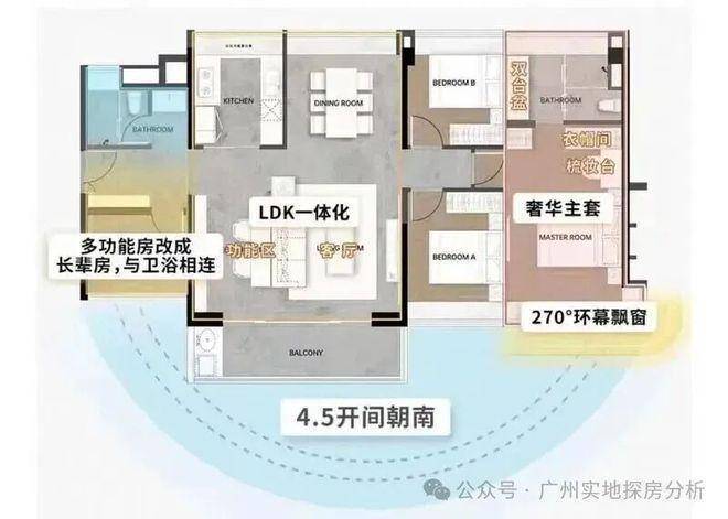 休闲设施上,社区配有中央双泳池、儿童乐园、约100平方米社区会客厅等,园林以海湾风情为主题,居住舒适度较高。7.8公里滨海景观带是横沥岛少有的长线公共空间,适合慢跑、骑行或傍晚散步,生活品质有明显提升。产品设计坚持全南向原则,户型方正实用,得房率高,蝶形布局也让楼间距相对合理。高层部分视野开阔,江景资源稀缺。现房交付让买家能直接考察园林、公区、样板房和交付标准,购房确定性更高。三大央国企联合开发,越秀物业接管,后期维护有预期。