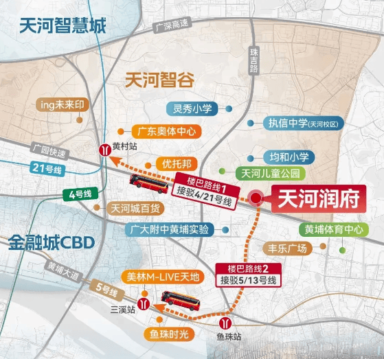 此外,天河润府在交通配套的优化上也下足了功夫。项目周边不仅拥有便捷的道路网络,更特别开通了免费楼巴线路,这一举措极大地弥补了暂无直达地铁的短板。两条楼巴线路,一条衔接4号线、21号线及天河东商圈,另一条直达5号线、13号线及珠江新城CBD,运营期长达5年。这不仅方便了业主的日常通勤,更打通了项目与城市核心资源的连接通道。对于许多工作在珠江新城或金融城的精英人士来说,这种“家门口坐楼巴,半小时达核心”的生活方式,无疑极具吸引力。