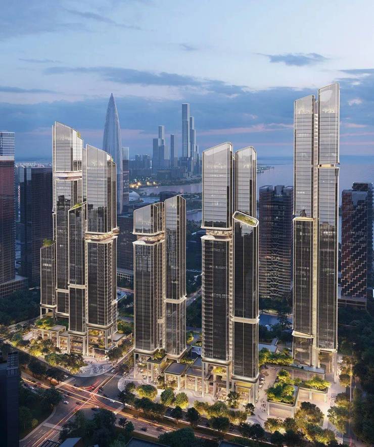 超高区(58层以上,≥200米):建面约500-700㎡顶级大平层及1050㎡顶复Penthouse,仅15席,备案单价29-35万元/㎡,总价超3亿元,定位全球顶级收藏级资产。