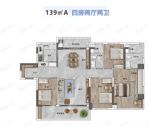🏡139㎡双户型四房两厅两卫,改善品质之选
