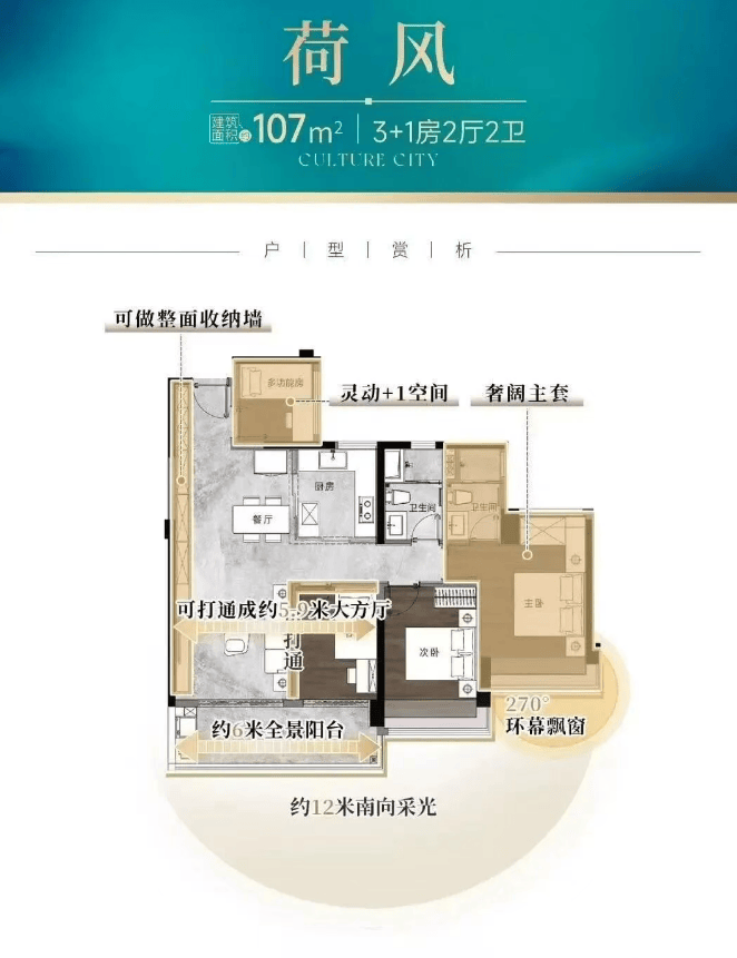 层高达约3.1米,搭配6–16米南向阳台,LDK一体化布局,通透感极强;