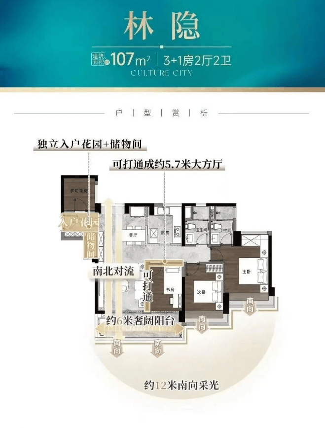 使用率超110%–120%:通过新规优化结构,107㎡可做四房,181㎡实现IMAX湖景大平层;