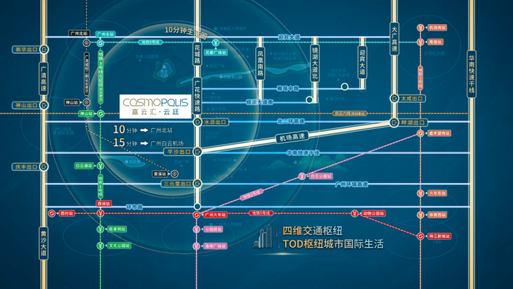 嘉云汇位于位于广州白云北广花创新核芯居住区,南面紧邻白云区,沿广花快速路即达白云新城,北面临近湿地公园花都湖湿地公园,亚太地区较大的TOD综合交通枢纽之一广州北站及国内三大航空枢纽之一白云机场,享受花都白云区双城规划利好。