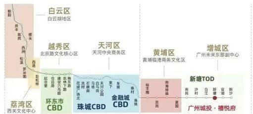广州城投禧悦府紧邻新塘TOD,距离地铁站约250米,周边汇聚5条地铁、3条高铁及2条城轨,形成高密度、多模式的交通网络。地铁13号线已通车,出行3站可达黄埔,9站到天河,45分钟直达珠江新城。未来,规划中的28号线、16号线和20号线将进一步提升交通便捷性,居民可轻松实现广深两大机场及湾区城市的1小时生活圈通勤。