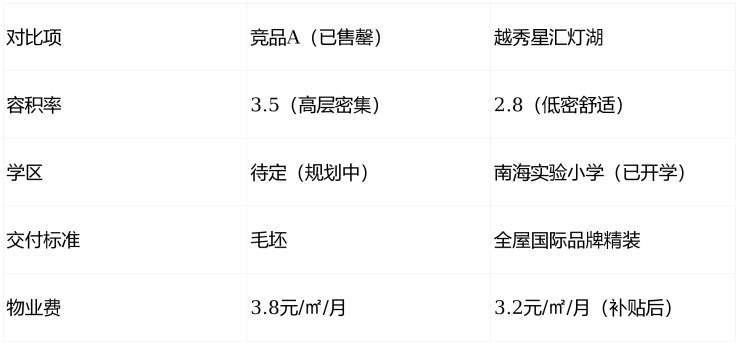 用户常问:“千灯湖其他盘也在降价,你们凭什么抗跌?”回答:抗跌性=稀缺资源(学区+地段)+ 开发商实力。竞品降价多因去化压力,而我们首开去化率超80%,当前优惠是“新春限时福利”,非市场下行妥协。