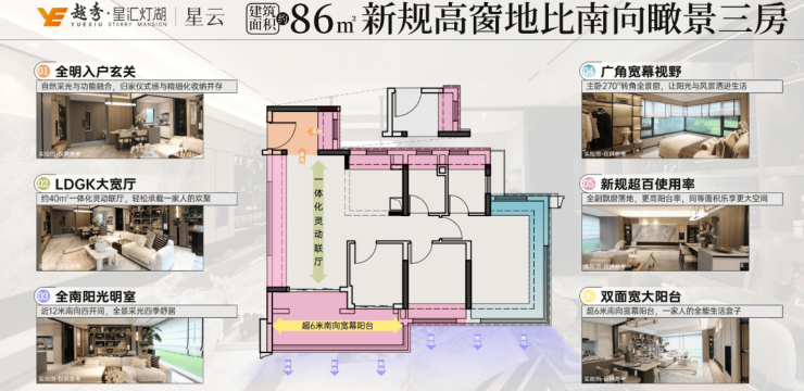 云舒丨建面约86㎡三房两厅两卫:南北通透,户户朝阳,阳光与风景平权。LDGK一体超宽开间设计,让家庭成员能够更好地互动交流。