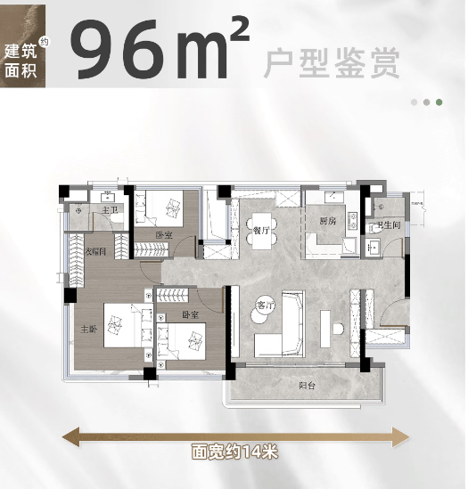 建面约122㎡4+X房两卫户型,建面使用率高达约118%,实际使用面积可达142㎡,超越市面140-160㎡户型的使用空间,四房+灵动空间的全功能格局,南北通透的全明设计,南向阔景大阳台,主卧套房带独立卫浴与衣帽间,既保障了大家庭的居住功能性,又兼顾了主人的居住私密性与舒适度。