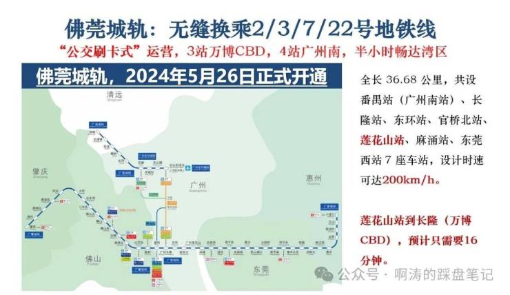 随着佛莞城际、穗莞深城际琶洲支线、广中珠澳城际等多条轨道交通的交汇,莲花湾正式迈入了“轨道上的大湾区”时代。特别是佛莞城际已于 2024 年 5 月 26 日正式通车,仅需 3 站即可直达万博,4 站可达广州南站,极大地缩短了通勤时间。此外,规划中的地铁 8 号线东延段,预计 2027 年开通试运营,届时将从莲花山站直通琶洲,仅需 7 站,这将彻底打破区域交通瓶颈,实现与广州核心商圈的无缝对接。