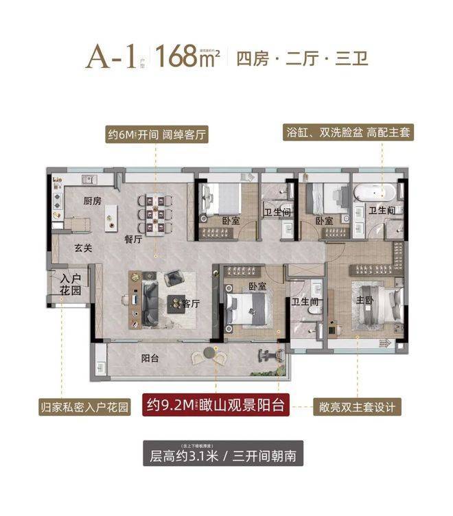 目前在售楼栋有 1 - 5 - 6 - 9 栋 。1/5 栋有 97 - 118 - 137 方户型;6 栋是 142 方户型(两种户型),两梯 3 户;9 栋为 168 方户型(两种户型),两梯 2 户。户型设计具备高端住宅基因体系,采用 LDK 一体化设计,空间布局合理,约 3.1 米层高,约 6.1 - 9.4 米宽景阳台,采光通风极佳。片区最高装修标准,定制国际品牌六大精装系统,智能化与人性化兼备。超大幕墙比例,外立面堪比汇悦台的前沿 “钻铂” 风格,不仅提升了居住舒适度,还在一定程度上提高了得房率,为业主提供了高品质的居住空间。