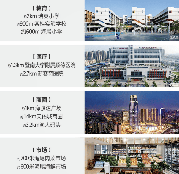 项目周边涵盖了广东省一级公办学校瑞英小学、海尾小学及容桂实验学校等优质教育机构,确保孩子们能够享受到优质的教育资源。同时,项目附近还有海骏达、天佑城、渔人码头、万达广场等多个高端商圈,满足居民的购物娱乐需求。