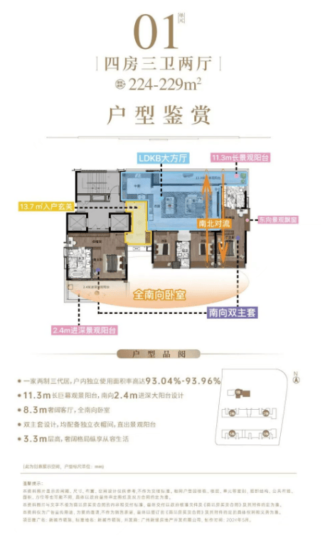 224-229㎡四房两厅三卫:叠院产品,分上下叠两户,适合追求更大居住空间的家庭。