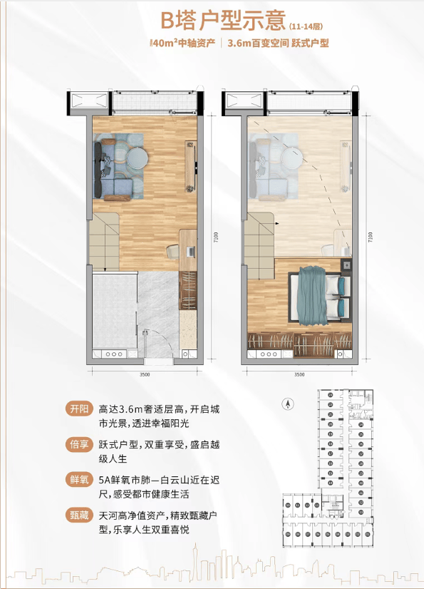广垦·天河1号在售约37-50㎡精品空间,以新规户型设计,实现高得房率。观云大厦推售建筑面积约37-41㎡中轴精品空间,层高3.4-3.6米,空间布局合理,满足自用、办公、投资多重需求。观成大楼则推售建筑面积约为37-50㎡中轴资产,层高4.5米,中空挑高设计,重新解构空间秘密,为业主打造宽敞舒适的居住环境。无论是自住还是投资,广垦·天河1号都是理想之选。