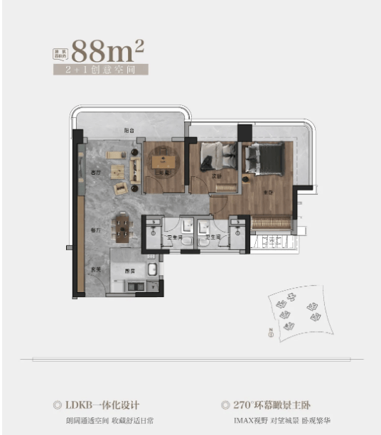 具体来看,88㎡户型采用LDKB一体化设计,配备约5.7M巨幕阳台与270°环幕瞰景主卧,空间布局紧凑合理,没有浪费面积,即使是作为刚需户型,也能满足家庭的基本居住需求。有购房者担心88平户型的书房面积过小,但实际测量数据显示,书房纵深约2.5米,宽约2.1米,作为儿童房完全适用,靠左侧墙摆放1.2米床后,靠阳台一端还有1.3米空间可设计书桌和吊柜,剩余0.9米宽的过道,并不显得局促。