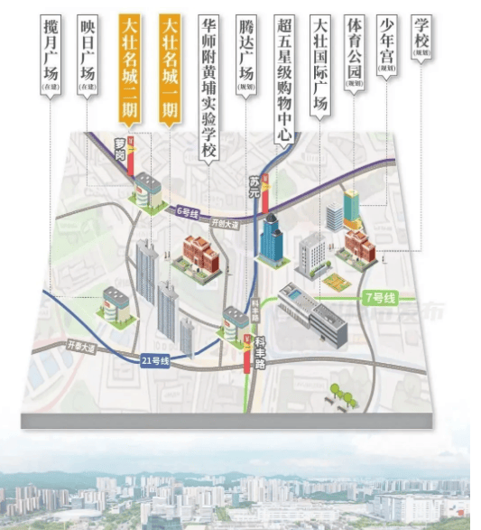大壮名城·名门占据科学城核心黄金2公里,是板块内上班人群、购物中心、地铁线路、名校资源最集中的片区。依托板块的强劲发展势能,项目不仅能享受现有成熟的配套资源,更能坐享区域未来发展带来的价值红利,成为科学城核心地段的价值锚点。