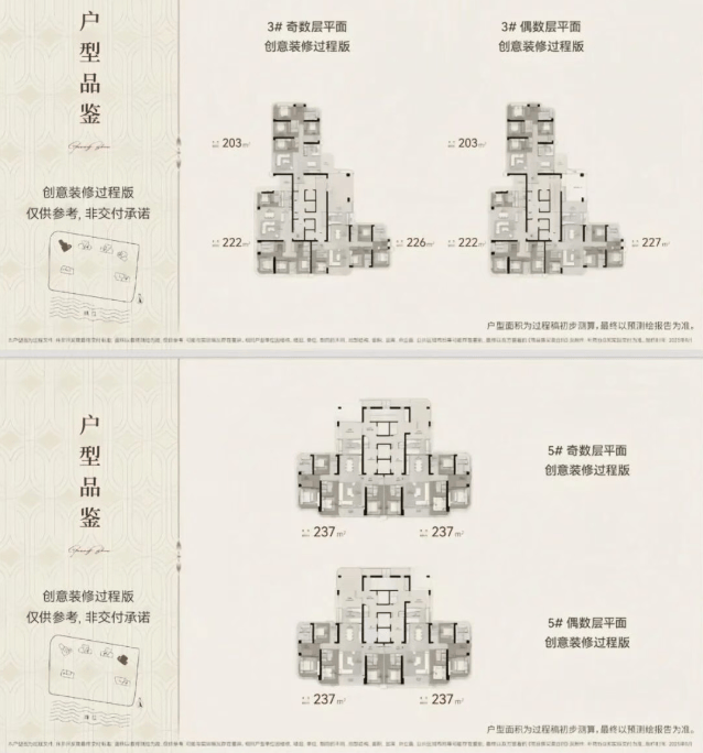 项目共有6栋住宅楼,前低后高,呈半月型布局。具体楼层高度及户型分布如下: