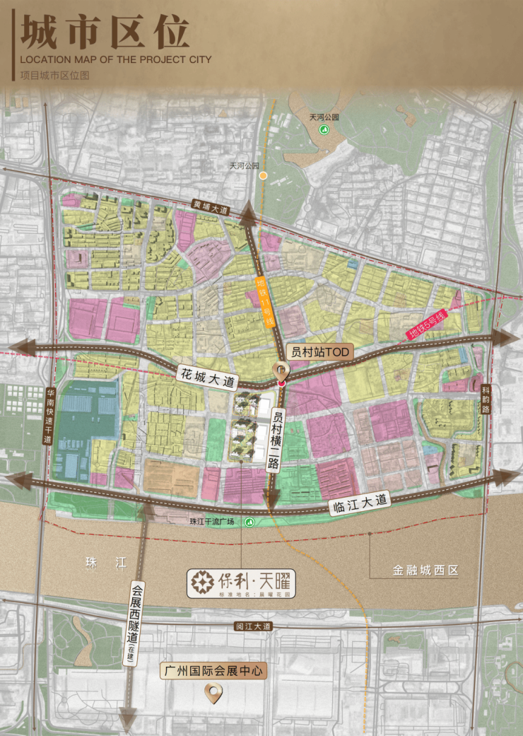 该地块位于金融城西区桥头堡位置,毗邻珠江新城,与汇悦台直线距离仅约600米,能够直接享受到珠城的优质配套资源。区域内还有多个可更新区域,如员村、程界西、程界东等,这些区域被规划为金融城西区,总面积约3.65平方公里,具有巨大的发展潜力。