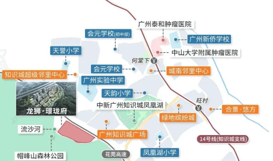 黄埔知识城作为国家级双边合作项目——中新广州知识城的核心承载区,近年来发展迅猛,被定位为粤港澳大湾区的重要创新极核。区域内规划有8条轨道交通、5条高速公路及7条城市快速路,构建起多维立体交通网络,目标打造“湾区1小时生活圈”。其中,花莞高速可无缝接驳城市主干道,约30分钟直达珠江新城。未来随着新白广城际线、白云机场联络线、37号线、广中珠澳线、广河高铁及有轨电车5号线等线路的陆续建成,区域通达性将进一步提升。知识城不仅是产业高地,更是宜居新城,其低密度、高绿化、强配套的城市规划理念,与龙狮璟珑府的产品定位高度契合。