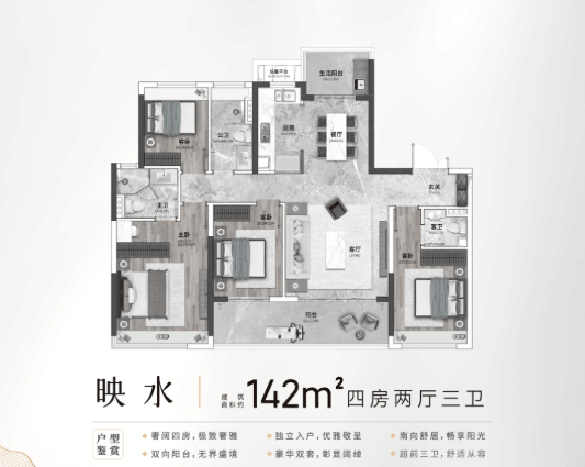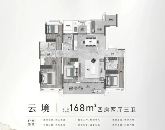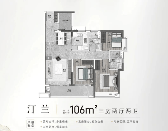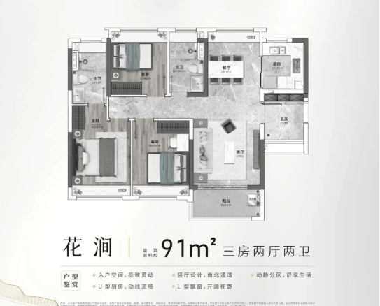 龙狮璟珑府在售户型面积涵盖91㎡、106㎡、142㎡及168㎡四大主力产品,精准覆盖刚需、改善及高端改善客群。91㎡户型为实用三房,布局紧凑高效;106㎡为进阶三至四房,空间更为舒展;142㎡主打改善型四房,强调功能分区与居住舒适度;168㎡则为奢阔大平层,配备双主套、大阳台等高端配置。所有户型均采用纯板楼设计,南北通透,户户对流,部分高层单位更可享180°帽峰山景,将自然景观引入日常生活。