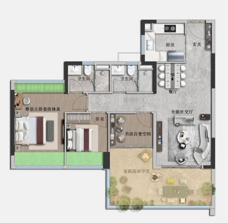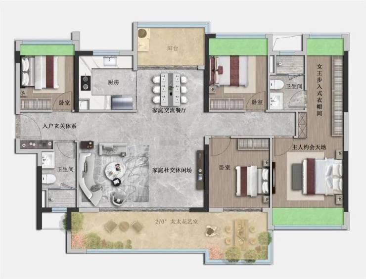 这里的主力户型为98-140㎡的三至四房,实现了几乎100%的使用率。特别是98㎡三房的设计,通过LDK一体化布局、飘窗全赠送等方式,让小户型也能拥有宽敞明亮的居住体验。每个房间都经过精心规划,无论是主卧还是次卧,都能享受到充足的自然光线,给人以温馨舒适的感觉。