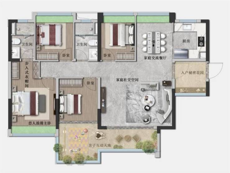 社区内部配置丰富,除了约1.8万㎡的“山河印”主题园林外,还有近50米奢华迎宾大门、双大堂设计以及架空层泛会所等设施,赋予生活更多尊崇感。尤其是儿童游乐园和健身设施的存在,满足了不同年龄段居民的需求,让人们在享受都市便利的同时,也能感受到大自然的美好。