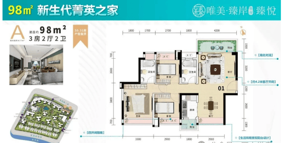 户型设计:98-230㎡全龄户型,江景与实用兼顾
