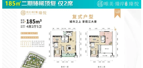 185-230㎡四至五房大平层:终极改善顶配,210-230㎡户型为一线江景现楼,可实地看房,四房五卫设计(185㎡)、大面宽江景阳台,主卧套房带独立卫浴与衣帽间,尽显大宅尺度,适合追求江景与品质生活的高端家庭。