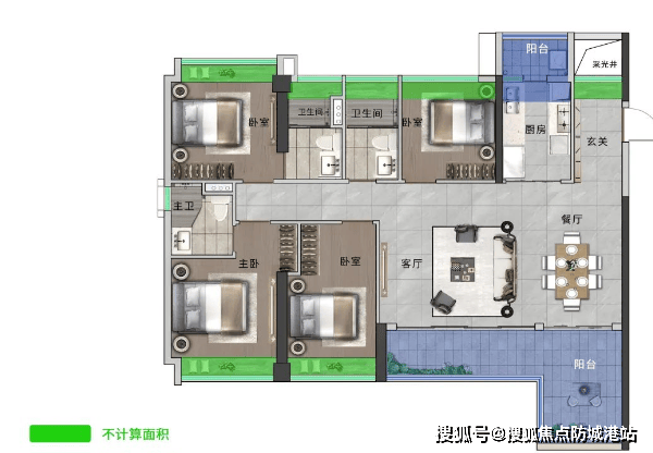 超豪华南北对流户型:约140平方米,南北通透,采光极佳。