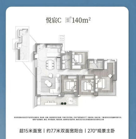 改善型买家则有更多选择。124㎡四房南北通透,玄关旁的灵动空间可并入客厅,形成约28㎡的阔绰起居空间,视觉开阔大气;主卧与次卧均带飘窗,延展使用面积。140㎡户型更进一步,提供两种布局:其一拥有约8.4米双面宽阔景阳台,主卧南北对流;其二实现超15米展宽、四开间朝南,7.7米大阳台贯通客餐厅,采光充足,客餐厨一体化设计强化家庭互动。
