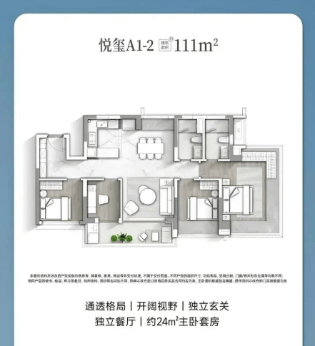 注重空间感与私密性的家庭,可关注111㎡四房。该户型实现五开间朝东南,横厅设计最大化引入自然光线,独立梯腿设计有效保障住户隐私,空间利用率极高。