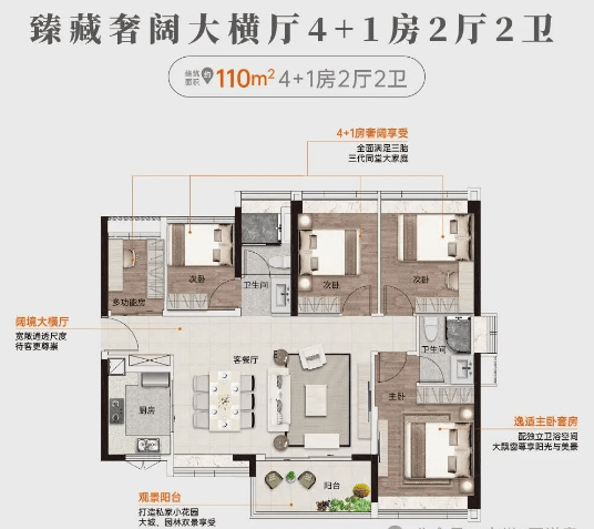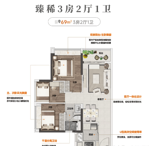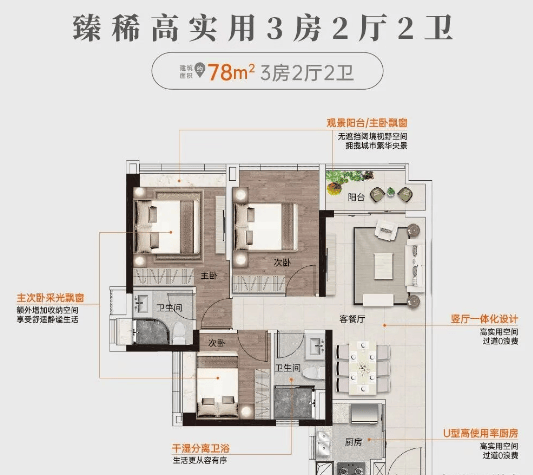 从69㎡至110㎡的多种户型设计,满足不同家庭的需求。特别值得一提的是,其户型实用率高达93%,为购房者提供了更多的使用空间。