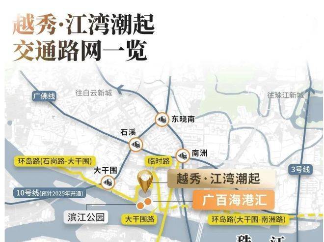 对于高端楼盘来说,区位和交通的便捷性,直接决定了居住的幸福感,而越秀·江湾潮起的交通优势,更是堪称“超级交通”配置,无论是地铁出行还是自驾出行,都能实现“瞬达全城”,彻底解决业主的通勤烦恼。项目距离已开通的10号线大干围站直线距离约650米,步行几分钟就能抵达地铁站,10号线作为串联天河、越秀、海珠、荔湾四大组团中心区的轨道“加密线”,能无缝接驳广州多条核心地铁线路,从项目出发,可快速抵达滨江东、五羊邨、珠江新城、体育西等市区核心板块,对于在CBD上班的精英人群来说,不用再为通勤早起,每天能多睡半小时,大大提升生活幸福感。