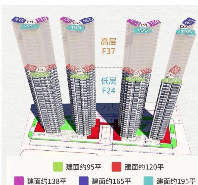 除了电梯的差异化设计,高低分区的梯户比和户型也各有侧重,充分满足不同家庭的居住需求。低区为3-24层,采用两梯四户的设计,预测户型有90-120-160㎡三种,主打偏改善的居住需求,户型布局合理,空间利用率高,每一户都能享受充足的采光和良好的通风,适合三口之家、两代同堂等家庭居住。高区为25-37层,采用两梯三户的设计,预测户型有120-160-190㎡偏改善产品,主打高端江景居住体验,高区视野开阔,能无遮挡欣赏到南向一线巨幕江景,部分户型的望江尺度甚至超过20米,让业主在家就能将珠江后航道的绝美江景尽收眼底,享受极致的景观体验。
