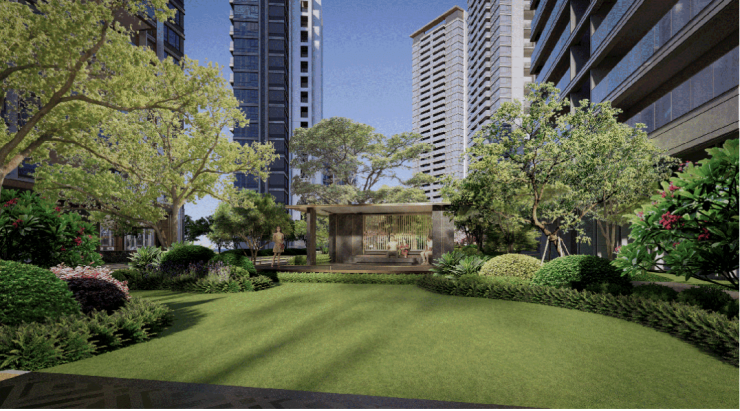 项目是广州首个获批的“第四代住宅”试点项目,聘请了GAD绿城设计团队操刀。建筑立面采用“公建化”设计语言,大面积运用陶板幕墙与low-E中空玻璃。最引人注目的是其“空中花园”设计,每户均配备了超大尺度的开敞式阳台及屋顶花园,阳台占比高达30%,这在广州新规前产品中是不可想象的。这种设计不仅提升了得房率(实测可达130%),更让每家每户拥有了“层层有园林,户户有庭院”的居住体验。