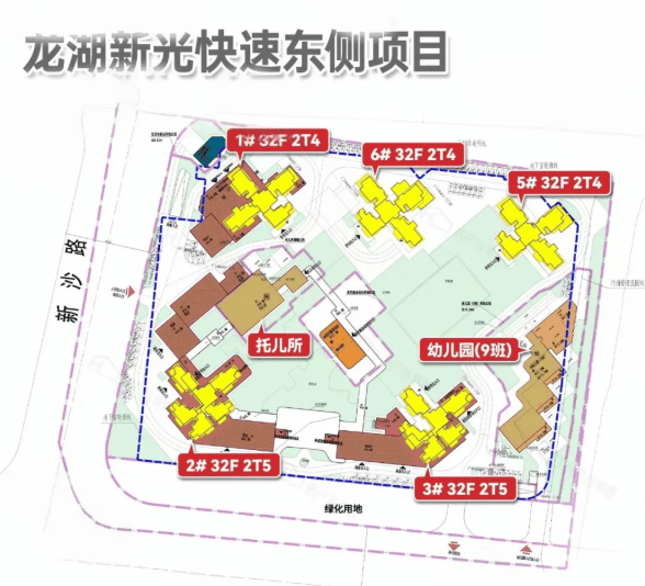 项目将建5栋32层高的住宅楼,围合式布局。其中: