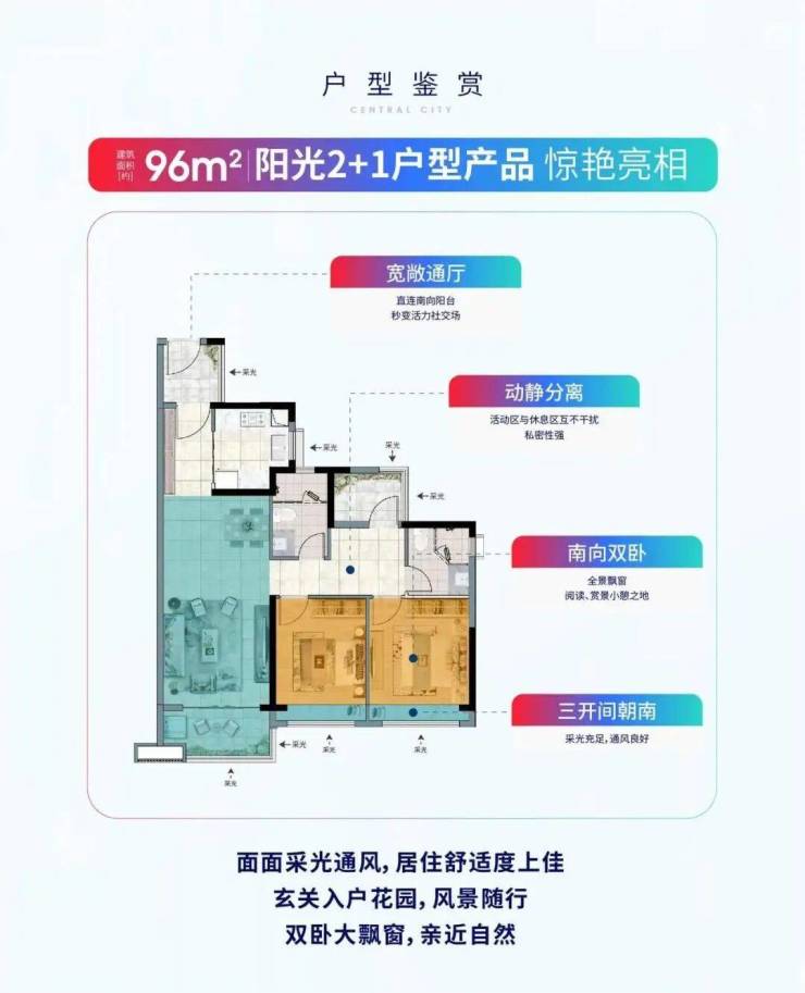 合生·中央城提供了丰富的产品线,以满足从首置、刚改到终极改善的不同家庭需求。项目户型设计方正实用,注重空间的通透性与功能性,得房率处于市场主流优秀水平。在装修标准上,延续合生一贯的精工品质,选用环保、耐用的知名品牌建材,注重细节处理与人性化收纳设计,旨在交付一个即享高品质的温馨之家。目前,在售房源主力户型包括: