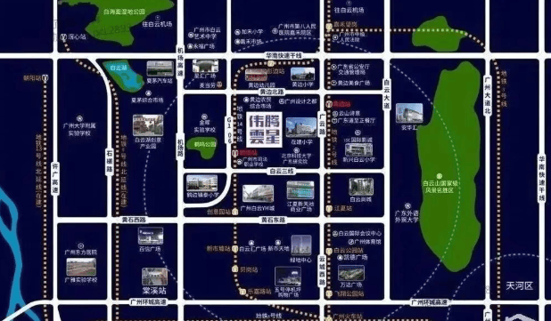 公路网络:自驾出行方便,周边有黄边北路、白云三线、鹤龙一路、机场路、广云路等主要道路,约600米即可进入华南快速。
