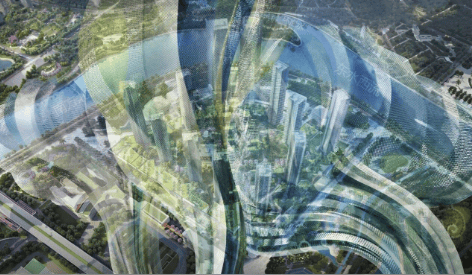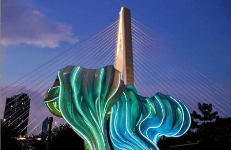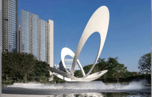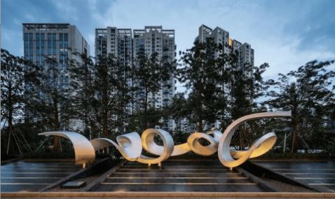 答:核心公共艺术装置为《灵华》,以东方“三生万物”哲思为内核,寓意灵华所在,万物更生。