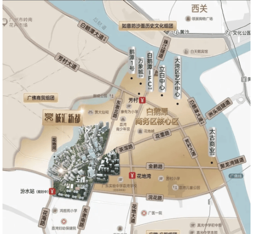 🌆 项目位于荔湾白鹅潭 CBD 核心区,是茶滘旧改重点项目,总占地约 58 万㎡,规划打造 200 万方集住宅、商业、教育、生态于一体的全能大城。白鹅潭作为广州西部核心发展板块,目前已落地万象城、太古系商业(在建)等顶级配套,未来 3 年总投资超 3000 亿,区域价值持续攀升,项目作为板块内稀缺江景大盘,将优先享受板块发展红利,居住与资产增值潜力显著。