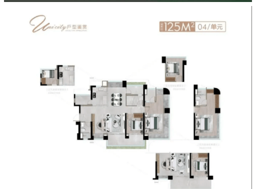 2. 江景改善户型:125-141㎡四房,IMAX 级河景视野