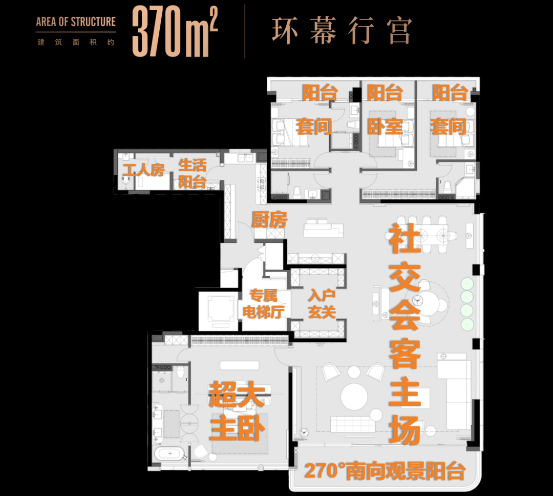 主推户型二:约380㎡五室两厅四卫(顶奢尊享型,解锁圈层人居)