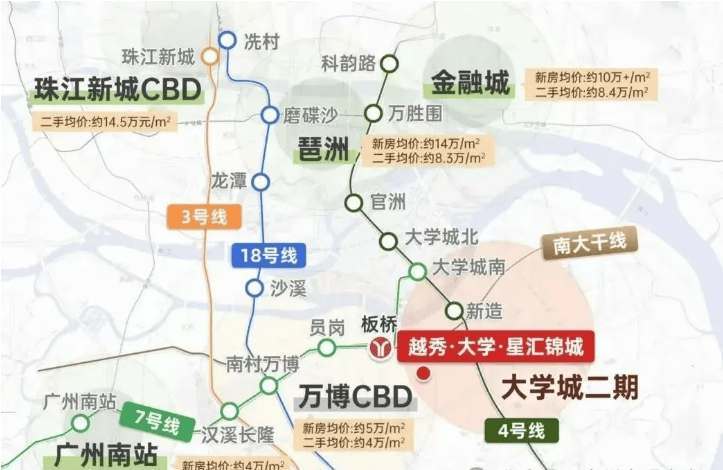 轨道交通层面,项目距离地铁 4 号线新造地铁站直线约 1.6 公里,小区东门通行后实际步行距离缩减至 800 米左右,日常步行通勤便捷舒适。4 号线贯穿广州南北主城,1 站直达大学城全域,3 站快速抵达万博 CBD,4 站接驳琶洲数字经济核心区,5 站直达珠江新城金融城核心商务区,无缝串联广州各大核心就业、商业、城市配套枢纽,地铁通勤高效覆盖全城主流置业板块。城市主干道方面,项目紧邻城市黄金大动脉南大干线,自驾出行无需绕行,10 分钟直达万博繁华商圈,30 分钟左右快速通达琶洲、珠江新城主城核心,南北双向快速衔接番禺全域与广州中心城区。金光东隧道已正式全线通车,实现大学城一期与二期无缝快速联动,跨江通勤零障碍,进一步缩短大学城内外往来时间。同时片区路网四通八达,广医南路、金光大道、新造主干道交织完善,多维立体交通路网成型,自驾、地铁双模式出行自由切换,全方位满足日常通勤、周末出游、跨区往来各类出行需求,彻底打破板块空间壁垒,享受主城半小时优质生活圈。