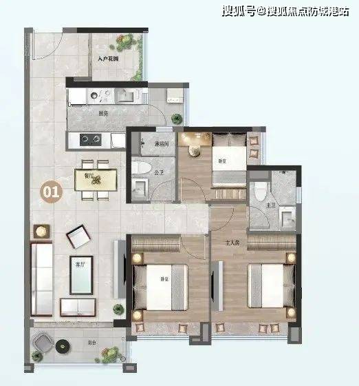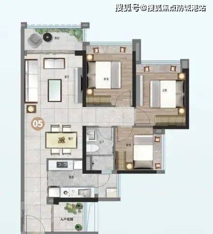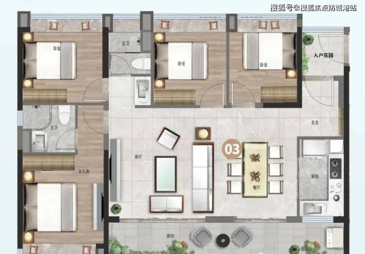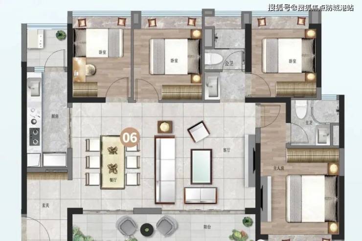 户型亮点:南北通透,主卧套房设计,得房率高达82%。